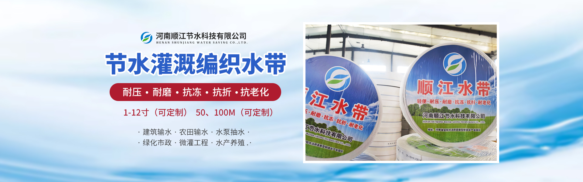 公司坐落于安陽市湯陰縣新型制造業產業園區,地理位置優越、交通便利,公司專注生產、經營農業灌溉編織水帶產品,年生產量3000萬米,可向市場提供多種型號水帶,主要為農業灌溉、園林綠化、丘陵輸水等提供更便利的條件,適用于各種農作物及蔬菜、水果等農業灌溉。